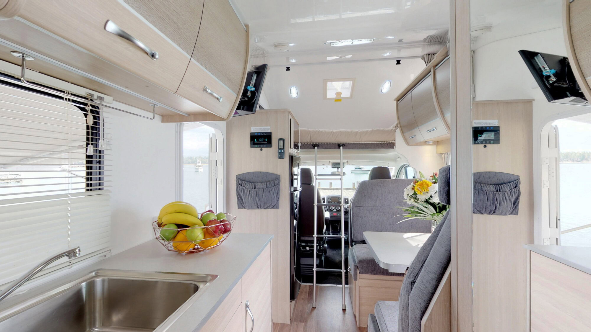 Die gut ausgestattete Küche, das separate Badezimmer mit Dusche & WC sowie umfangreiches Zubehör wie Bettwäsche, Handtücher und Unterhaltungselektronik machen den Seeker zu einem echten Zuhause auf Rädern.